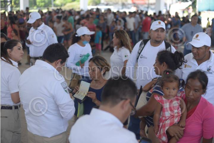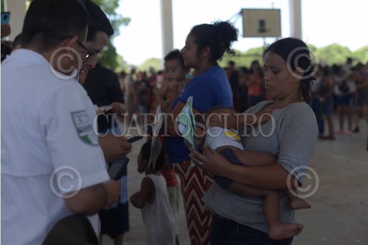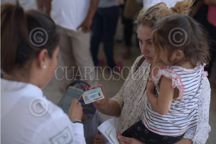 ACACOYAGUA, CHIAPAS, 27MARZO2019.- Representantes del Instituto Nacional de Migración acudieron a la unidad deportiva de este municipio para realizar un pre registro a los migrantes y así iniciar el trámite para el libre tránsito por México, de esta forma ellos podrán llegar sin problemas a la frontera con Estados Unidos, está caravana es la primera que logra este trámite tan cerca de la frontera sur del país. FOTO: ISABEL MATEOS /CUARTOSCURO.COM