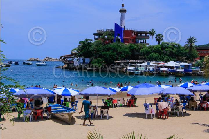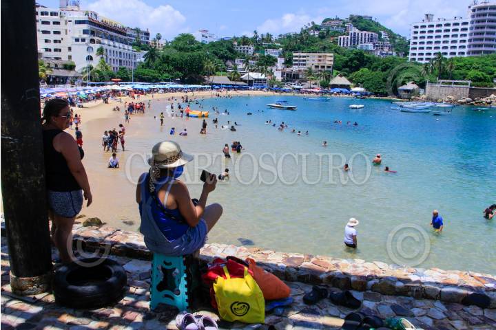 Con gran afluencia de turismo se observan las playas de Caleta y Caletilla, en Acapulco.