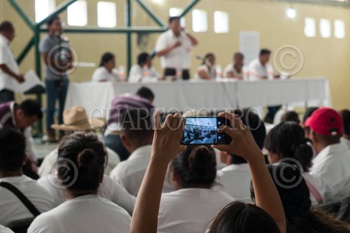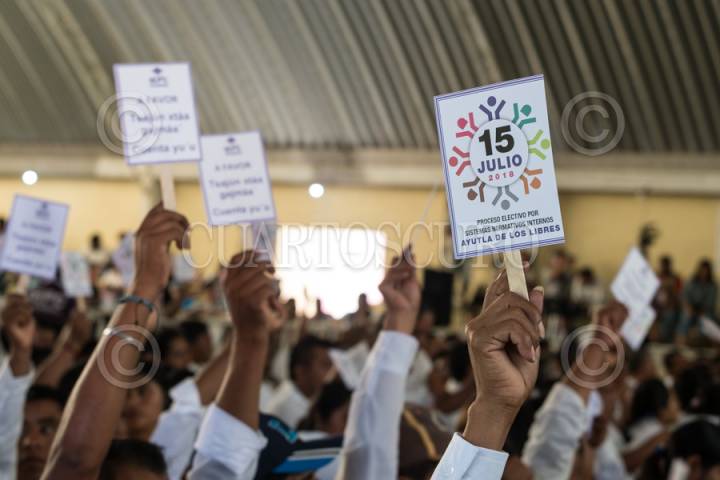 AYUTLA DE LOS LIBRES, GUERRERO, 15JULIO2018.- Desde temprana hora miembros de la Asamblea Municipal de representantes comunitarios y habitantes de las comunidades Indígenas de Guerrero comenzaron a arribar las inmediaciones del deportivo Ayutla. Los representantes se reunieron en las instalaciones del mismo para decidir por primera vez a través del sistema normativo propio (de usos y costumbres) la forma de su nuevo gobierno, así como sus integrantes. Convirtiéndose en el primer municipio en el estado de Guerrero y segundo en el país regido por un sistema normativo propio y no por partidos políticos. Desde el año 2014, Manuel Vázquez Quintero, representante y abogado comunitario, presentó ante el Instituto Electoral y de participación ciudadana de Guerrero (IEPC) un documento con la propuesta para poder elegir a su próximo gobernador en el 2015; los partidos políticos PRD, PRI y el Partido verde Ecologista impugnaron la iniciativa. Fue en el año 2016 que lograron desechar la impugnación y se declaró que se podría elegir a los miembros de su próximo gobierno el día de hoy. FOTO: ANDREA MURCIA /CUARTOSCURO.COM