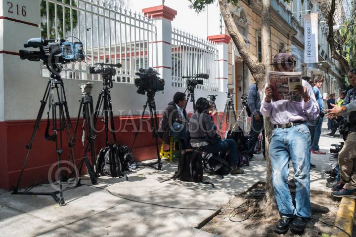 CIUDAD DE MÉXICO, 22JULIO2018.- Un hombre lee el periódico mientras esperaba la llegada de Andrés Manuel López Obrador, virtual presidente electo, quien ofreció una conferencia de prensa para dar lectura a la carta que se le había mandado semanas antes a el presidente de Estados Unidos Donald Trump. FOTO: ANDREA MURCIA /CUARTOSCURO.COM