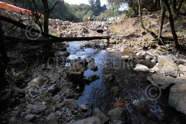 OCOYOACAC, ESTADO DE MÉXICO, 21FEBRERO2018.- Debido a las obras del Tren Interurbano México-Toluca ejidatarios de Acazulco exigen se respete el caudal de Río Hondito, llaman a las autoridades encargadas se diseñe un plan para no seguir afectando los mantos freaticos. FOTO: ARTEMIO GUERRA BAZ /CUARTOSCURO.COM