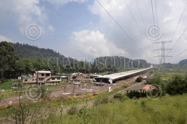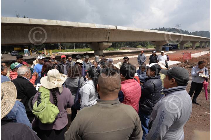 OCOYOACAC, ESTADO DE MÉXICO, 30AGOSTO2024.- Más de 6 horas lleva bloqueada la carretera Toluca-México por comuneros de Acazulco exigiendo el pago de las tierras que fueron usadas para el paso de la obra del Tren Interurbano El Insurgente en la zona de la Marquesa, ocasionando caos vial. FOTO: CRISANTA ESPINOSA AGUILAR /CUARTOSCURO.COM