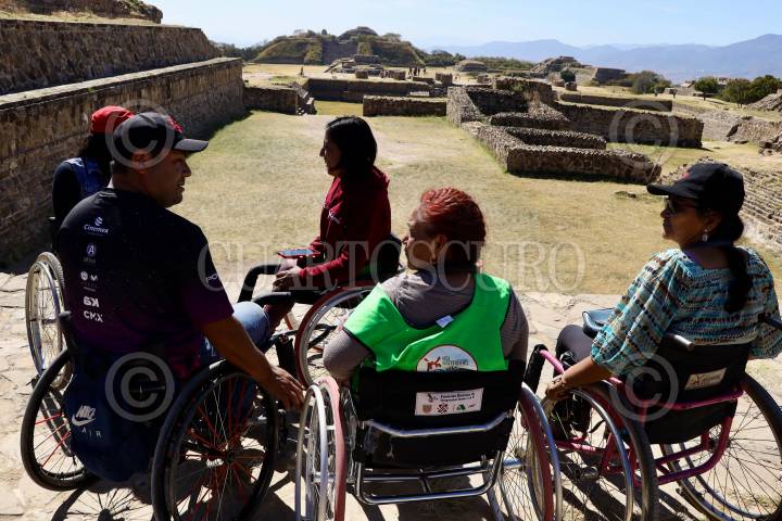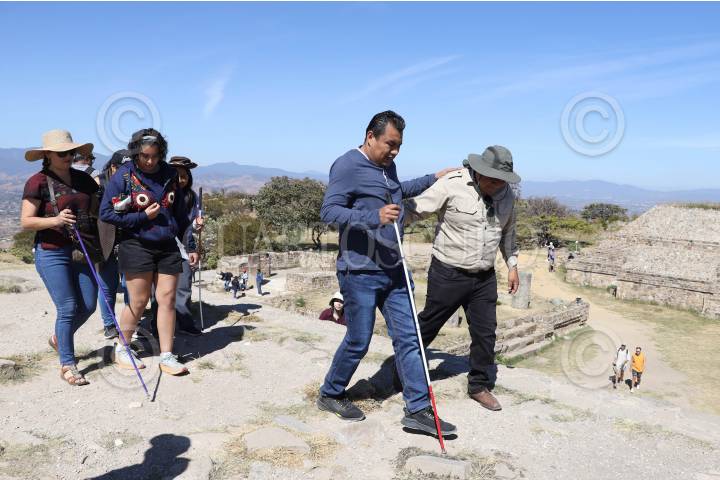 SAN PEDRO IXTLAHUACA, OAXACA, 04DICIEMBRE2024.- Permitir que personas con discapacidades accedan al legado histórico y cultural de Oaxaca, es el objetivo de hacer accesibles las zonas arqueológicas como Monte Albán. En torno al Día Internacional de las Personas con Discapacidad, que se conmemora el 3 de diciembre, este día el Instituto Nacional de Antropología e Historia (INAH) el Sistema para el Desarrollo Integral de la Familia (DIF) y la Universidad Autónoma Benito Juárez de Oaxaca a través de la Facultad de Arquitectura, dieron a conocer iniciativas para que personas con discapacidades de movilidad, auditiva y visual puedan conocer y recorrer la zona arqueológica de Monte Albán. Se han puesto a disposición recorridos guiados en lengua de señas mexicana y especiales para débiles visuales y ciegos que incluyen maquetas a escala de edificios que conforman el conjunto monumental. FOTO: CAROLINA JIMÉNEZ/CUARTOSCURO.COM