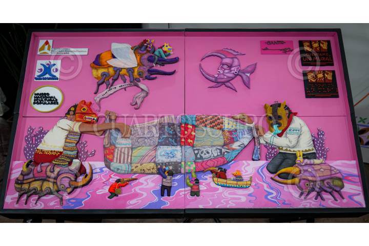 CIUDAD DE MÉXICO, 31 DE JULIO DE 2024 - Se llevó a cabo la experiencia inmersiva del mural "Tejedores de sueños" para personas con discapacidad visual en el Museo de las Culturas Populares. Este mural, creado originalmente por los artistas plásticos mexicanos Saner y Sego, forma parte del proyecto "Cuéntame un mural", que tiene como objetivo hacer el arte accesible para personas con discapacidad visual. Para garantizar esta accesibilidad, la adaptación del mural no solo incluyó texturas, sino que también mantuvo los colores originales, permitiendo que quienes tienen baja visión puedan apreciarlo plenamente. FOTO: ALICE MORITZ/CUARTOSCURO.COM