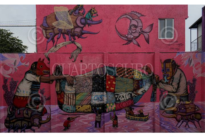 CIUDAD DE MÉXICO, 31 DE JULIO DE 2024 - Cecilia González, creadora del proyecto “Cuéntame un mural” junto a Valtier Mejía, presentó la experiencia inmersiva del mural "Tejedores de sueños" para personas con discapacidad visual en el Museo de las Culturas Populares. Este mural, originalmente creado por los artistas plásticos mexicanos Saner y Sego, forma parte de un proyecto que busca hacer el arte accesible para personas con discapacidad visual. Para garantizar esta accesibilidad, la adaptación del mural incluyó texturas y mantuvo los colores originales, permitiendo que quienes tienen baja visión también puedan apreciarlo plenamente. FOTO: ALICE MORITZ/CUARTOSCURO.COM