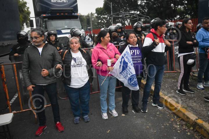CIUDAD DE MÉXICO, 03SEPTIEMBRE2024.- Trabajadores del Poder Judicial bloquean los accesos al recinto legislativo de San Lázaro para impedir que legisladores de Morena y aliados lleven a cabo la sesión ordinaria en la que se contempla discutir la iniciativa de reforma al Poder Judicial. FOTO: MARIO JASSO/CUARTOSCURO.COM