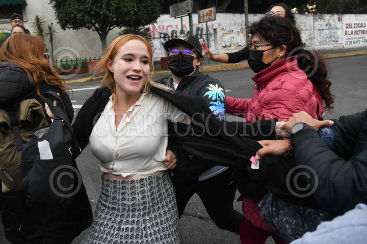 CIUDAD DE MÉXICO, 03SEPTIEMBRE2024.- Conato de bronca entre una mujer trabajadora de la Cámara de Diputados con miembros del Poder Judicial quienes bloquean los accesos al recinto legislativo de San Lázaro para impedir que legisladores de Morena y aliados lleven a cabo la sesión ordinaria en la que se contempla discutir la iniciativa de reforma al Poder Judicial. FOTO: MARIO JASSO/CUARTOSCURO.COM