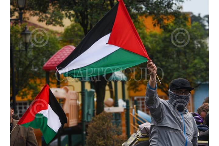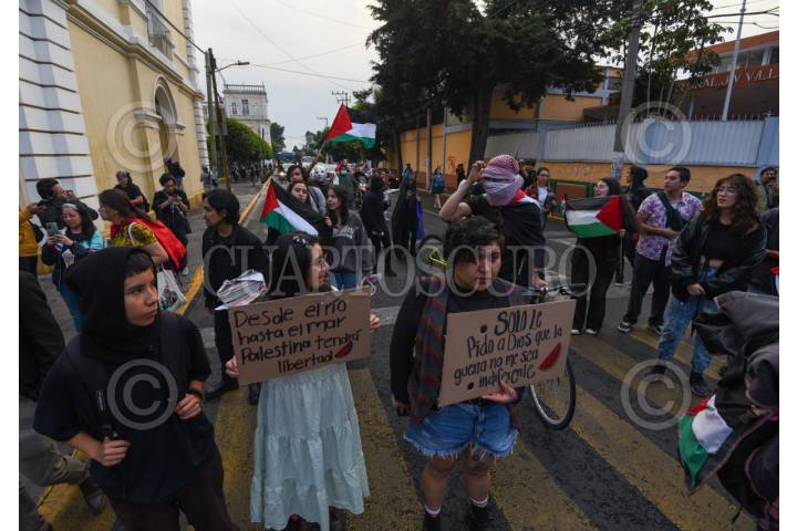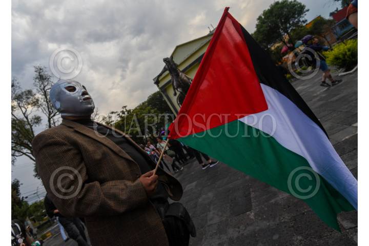 TOLUCA, ESTADO DE MÉXICO, 17MAYO2024.- Activistas de diversos colectivos se unieron en el Parque Simón Bolívar en una Acción por Palestina en Toluca, haciendo un llamado para romper relaciones con israel y paren los ataques a los palestinos. FOTO: CRISANTA ESPINOSA AGUILAR /CUARTOSCURO.COM