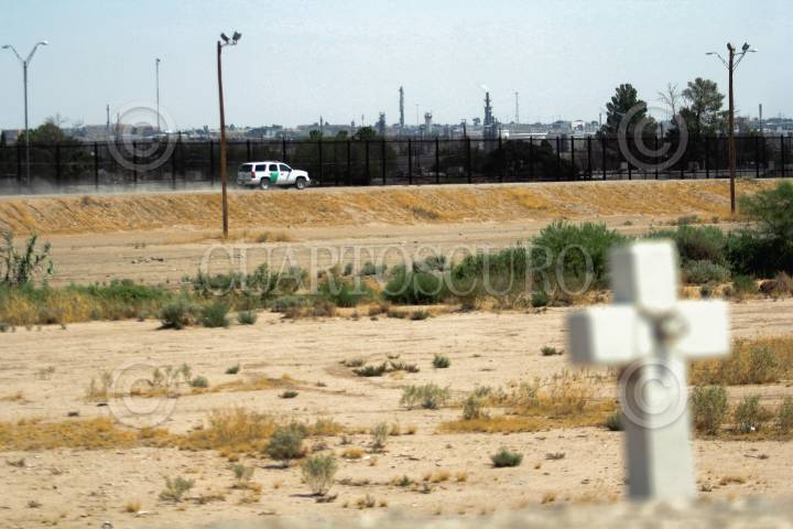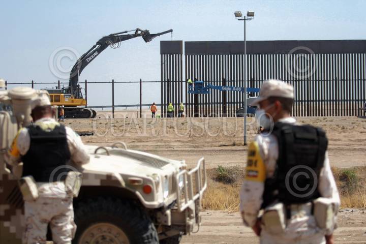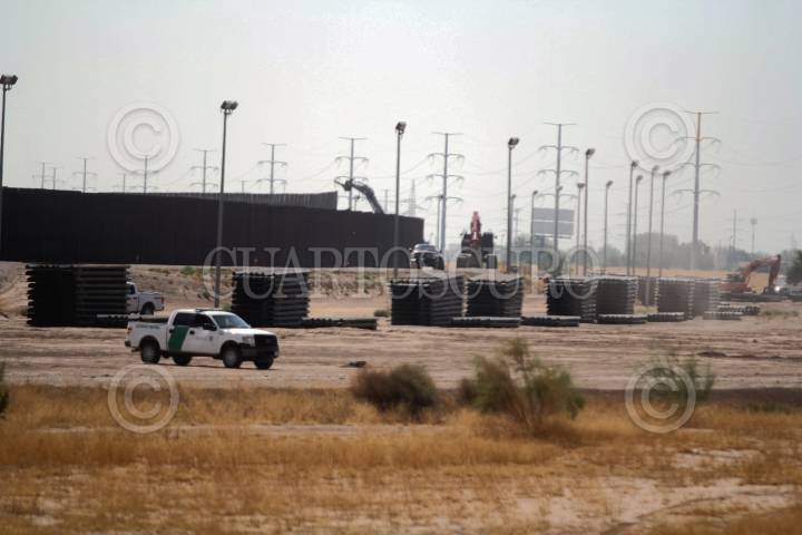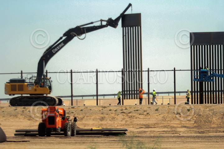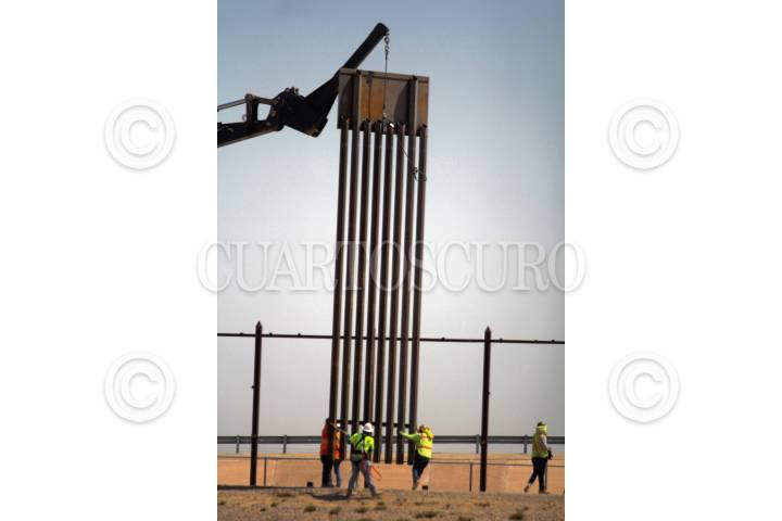 Colocación de los barrote de acero en el punto 40 del muro fronterizo en Ciudad Juárez, Chihuahua.