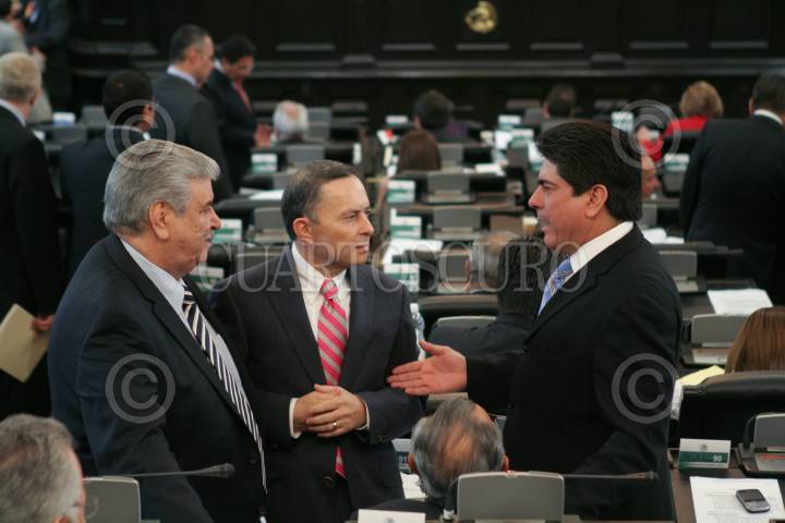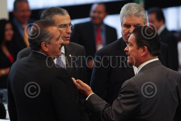 MÉXICO, D.F., 26OCTUBRE2010.- Los coordinadores de los tres partidos mayoritarios en la Cámara de Senadores conversaron en el sesión de la Cámara de Senadores; Manlio Fabio Beltrones, José González Morfín y Carlos Navarrete, además de Carlos Aceves del Olmo. FOTO: MOISÉS PABLO/CUARTOSCURO.COM