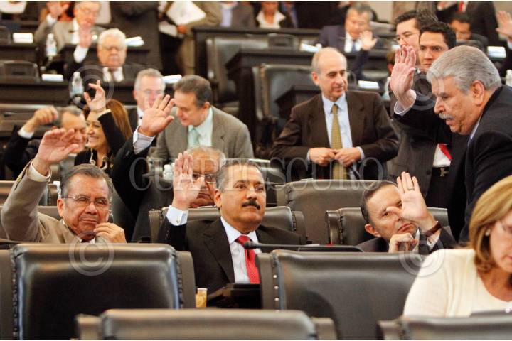 MÉXICO, D.F., 15FEBRERO2011.- Los senadores priista en votación en la Cámara de Senadores; Heladio Ramírez, Manlio Fabio Beltrones, Fernado Castro Trenti y Carlos Aceves del Olmo FOTO: CUARTOSCURO.COM