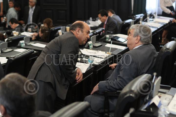 MÉXICO, D.F., 22MARZO2011.- Los tricolores Jesús Murillo Karam y Carlos Aceves del Olmo, en la sesión de la Cámara de Senadores. FOTO: MOISÉS PABLO/CUARTOSCURO.COM