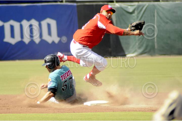 MÉXICO D.F., 04JUNIO2011.- José Castilo de los Saraperos forza a el diablo Jonathan Aceves en segunda base, durante las acciones del partido de béisbol entre los Saraperos de Saltillo Contra Los Diablos del México, en el foro Sol. Los locales se impusieron 8-7 carreras. FOTO: ENRIQUE GUTIERREZ/AGENCIA 2.8./CUARTOSCURO.COM