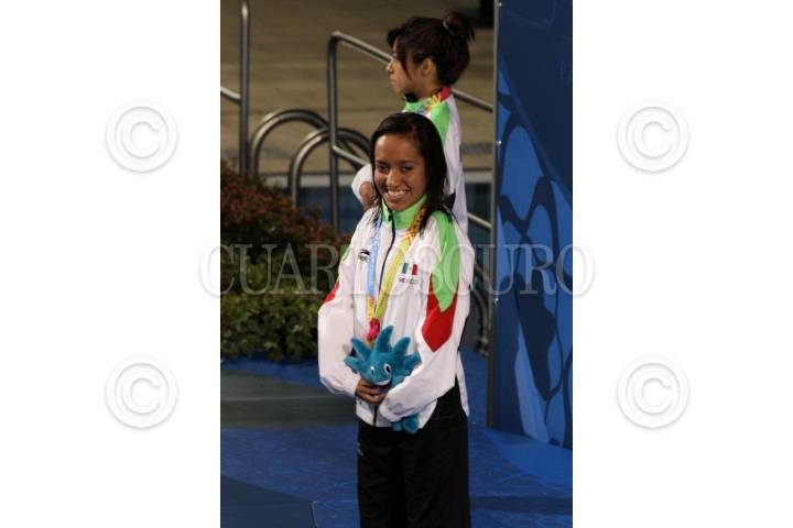 ZAPOPAN, JALISCO, 16NOVIEMBRE2011.- En la alberca del Centro Acuático la nadadora mexicana Haidee Aceves Pérez consiguió la medalla de oro en la prueba final de los 50 metros pecho femenil SB2, además de romper el récord paranamericano 1:41.57 minutos. En la misma competencia Fabiola Ramírez consiguió colgarse la presea de plata. FOTO: FERNANDO CARRANZA RAMÍREZ/CUARTOSCURO.COM