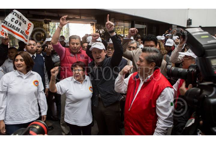 CIUDAD DE MÉXICO, 08DICIEMBRE2017.- Mikel Arriola, candidato por el PRI para la gubernatura de la Ciudad, se presentó por la mañana en las oficinas de la CTM y fue recibido por el líder Carlos Aceves del Olmo. En el evento el sector de los trabajadores mostraron su apoyo al candidato. FOTO: TERCERO DÍAZ / CUARTOSCURO.COM
