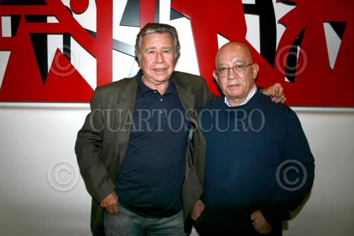 MÉXICO D.F. 29JUNIO2007.- El escultor Manuel Felguerez y el pintor Gilberto Acevez Navarro durante la inaguración de la exposición artística, mural permanente y muestra audiovisual en el Centro Cultural Estación Indianilla. FOTO: CUARTOSCURO.COM