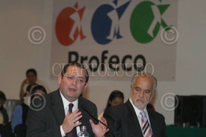 MEXICO, D.F. 20FEBRERO2006.- Carlos Arce Macias, titular de la PROFECO y Luis Mariano Acévez durante la sesión del consejo de dicho organismo. FOTO: Nelly Salas/CUARTOSCURO.COM