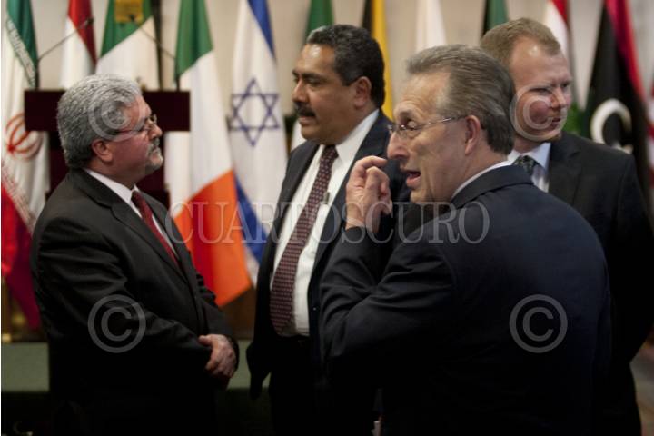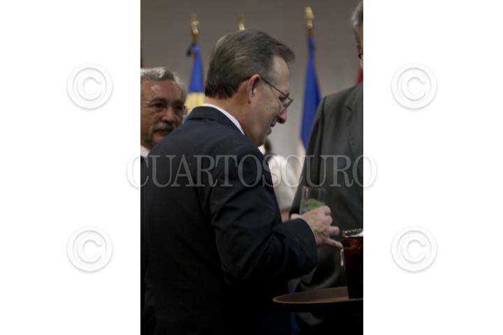 MÉXICO, D.F., 08FEBRERO2011.- Anthony Wayne Embajador de los Estados Unidos en México, durante la recepción del Cuerpo Diplomático Acreditado en México en las Instalaciones de la Cámara de Diputados. Al fondo Manuel Aguilera, embajador de Cuba en México quien dialoga con un acesor del diputado presidente de la mesa directiva. FOTO: GUILLERMO PEREA/CUARTOSCURO.COM