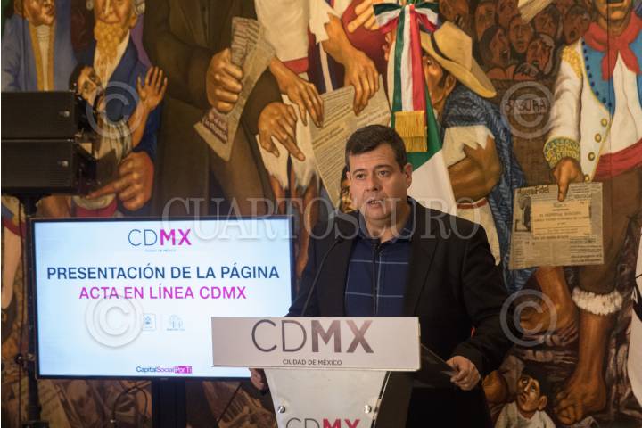 CIUDAD DE MÉXICO, 27NOVIEMBRE2018.- José Ramón Amieva, Jefe de Gobierno, durante la presentación de la página acta en línea de la Ciudad de México, en la cual los ciudadanos podrán descargar sus documentos de nacimiento de una forma segura, ya que cuentan con varios candados de seguridad. FOTO: MOISÉS PABLO /CUARTOSCURO.COM