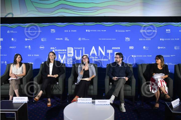 CIUDAD DE MÉXICO, 19MARZO2025.- Valentina Leduc, directora del documental "Los sueños que compartimos"; Daniela Alatorre, directora general del Instituto Mexicano de Cinematografía; Itzel del Cañizo, directora general de Ambulante; Ramón Ramírez, director de Relaciones Públicas de Cinépolis; Lucia Cavalchini, sudirectora de Desarrollo Institucional y Procuración de Ambulante, y Kani Lapuerta, director del documental "Niñxs", durante la presentación del festival "Ambulante" en vigésimo aniversario, que se llevará a cabo del 3 de abril al 12 de junio. FOTO: MARIO JASSO/CUARTOSCURO.COM