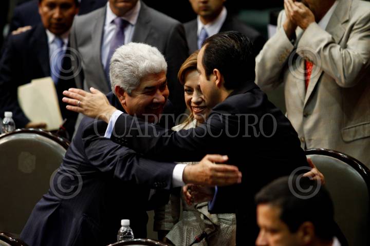 MÉXICO, D.F., 06OCTUBRE2011.- El diputado del PRD Armando Ríos Piter y el diputado del PAN Francisco Ramírez Acuña durante la discusión sobre la propuesta de la terna para consejeros del IFE que fue rechazada durante la sesión ordinaria en la Cámara de Diputados. FOTO: RODOLFO ANGULO/CUARTOSCURO.COM