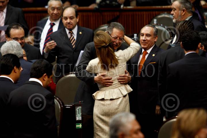 MÉXICO, D.F., 06SEPTIEMBRE2011.- El diputado del PRI, Francisco Rojas despide a Josefina Vazquez Mota, aspirante del PAN a la Presidencia de la República durante la sesión ordinaria en la Cámara de Diputados. FOTO: RODOLFO ANGULO/CUARTOSCURO.COM