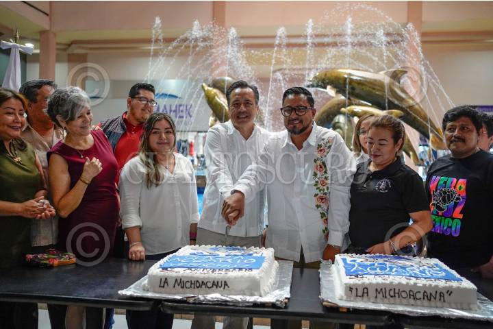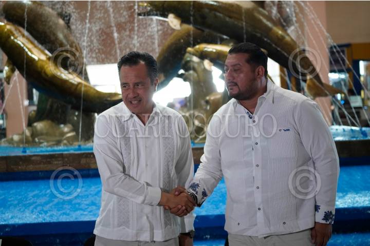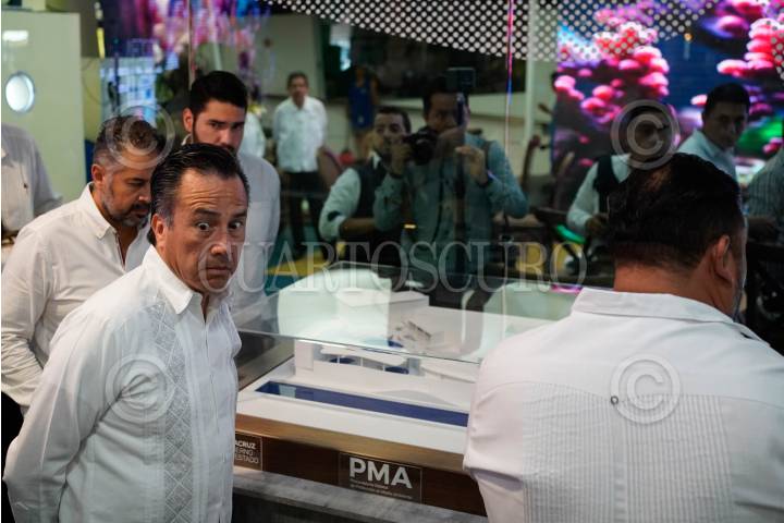 VERACRUZ, VERACRUZ,13NOVIEMBRE2023.- El Gobernador Cuitláhuac García Jiménez, y el procurador del Medio Ambiente en el estado,Sergio Rodríguez Cortés, presentaron las obras de ampliación que se realizan en el Aquarium de Veracruz, donde se implementarán nuevas tecnologías, como la realidad virtual, con la cual se podrá conocer más de la vida marina y de los arrecifes veracruzanos. Se contará con nuevas especies, peceras interactivas, donde niños podrán ingresar y admirar de más cerca especies de distintos tamaños. FOTO: VICTORIA RAZO/CUARTOSCURO.COM