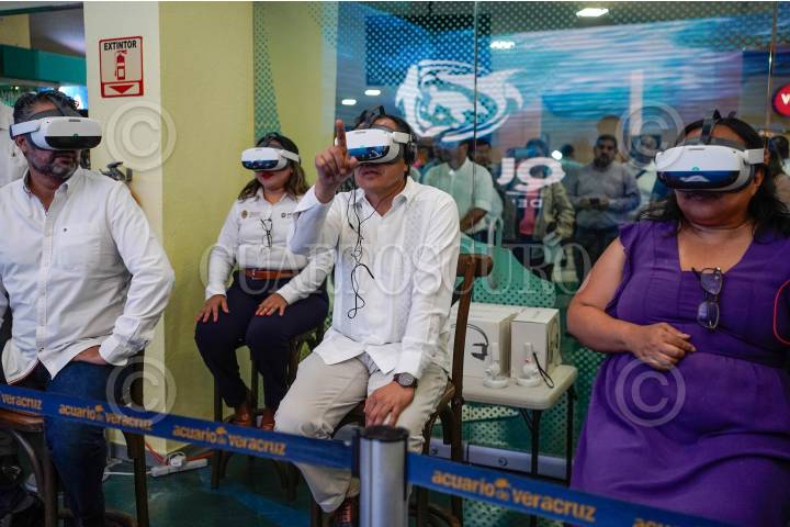 VERACRUZ, VERACRUZ,13NOVIEMBRE2023.- El Gobernador Cuitláhuac García Jiménez junto con el procurador del Medio Ambiente en el estado,Sergio Rodríguez Cortés, y el secretario de Turismo, Iván Martínez Olvera presentaron las obras de ampliación que se realizan en el Aquarium de Veracruz, donde se implementarán nuevas tecnologías, como la realidad virtual, con la cual se podrá conocer más de la vida marina y de los arrecifes veracruzanos. Se contará con nuevas especies, peceras interactivas, donde niños podrán ingresar y admirar de más cerca especies de distintos tamaños. FOTO: VICTORIA RAZO/CUARTOSCURO.COM
