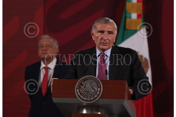 Adán Augusto López Hernández, secretario de Gobernación durante conferencia de prensa en Palacio Nacional.