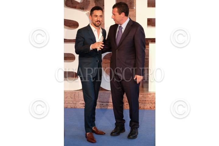 CIUDAD DE MÉXICO, 12JUNIO2019.- Los actores Luis Gerardo Méndez y Adam Sandler durante la Alfombra Azul de la película Misterio a bordo, la cual se estrenará el 14 de junio en la plataforma de Netflix. FOTO:GRACIELA LÓPEZ /CUARTOSCURO.COM