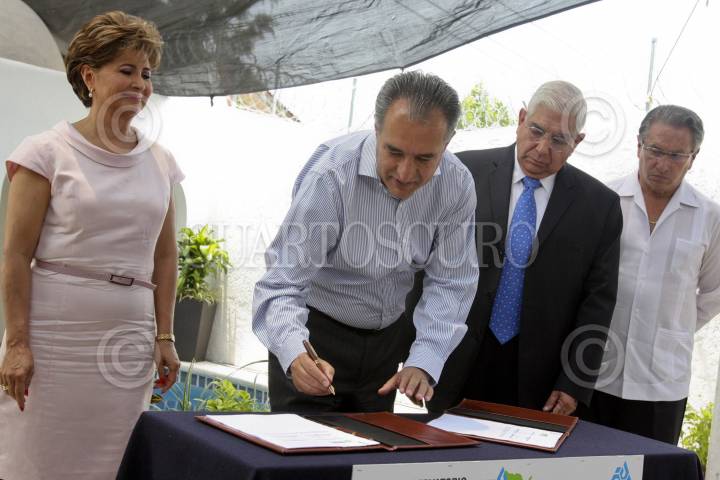 CUERNAVACA, MORELOS, 09MAYO2012.- Marco Antonio Adame, gobernador del estado durante la firma de convenio entre las instancias; Confederación Patronal de la República Mexicana, el Observatorio Nacional Ciudadano y el Gobierno del estado de Morelos, luego que en la mañana se realizara el anunció del plan Morelos seguro. FOTO: ALMA LAFAYET /CUARTOSCURO.COM