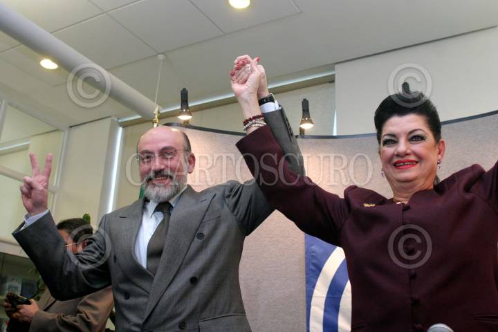 Mèxico, D.F., 11ENERO2005.- Luis Felipe Bravo Mena, presidente del PAN nacional y Addy Joaquín Coldwell, candidata del partido blanquiazul a la gobernatura de Quintana Roo, durante una conferencia de prensa en su sede nacional. FOTO: Moisés Pablo/CUARTOSCURO.COM