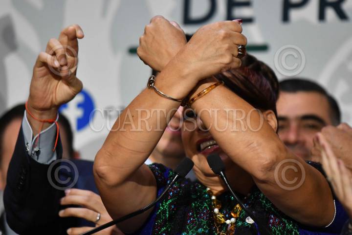 CIUDAD DE MÉXICO, 10OCTUBRE2023.- Adela Ramos Juárez, forma con sus brazos una "X" en apoyo a Xóchitl Gálvez, coordinadora del Frente Amplio por México, durante su presentación como nueva legisladora del PAN, luego de salir de la bancada del grupo parlamentario de Morena. FOTO: MARIO JASSO/CUARTOSCURO.COM