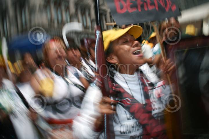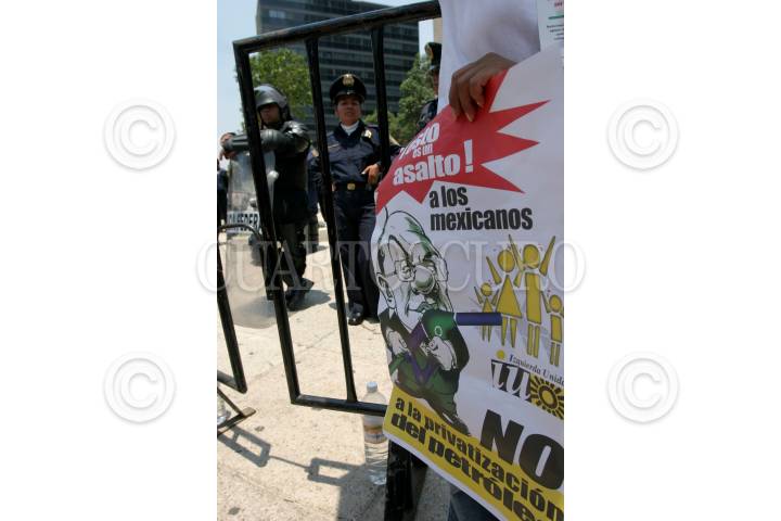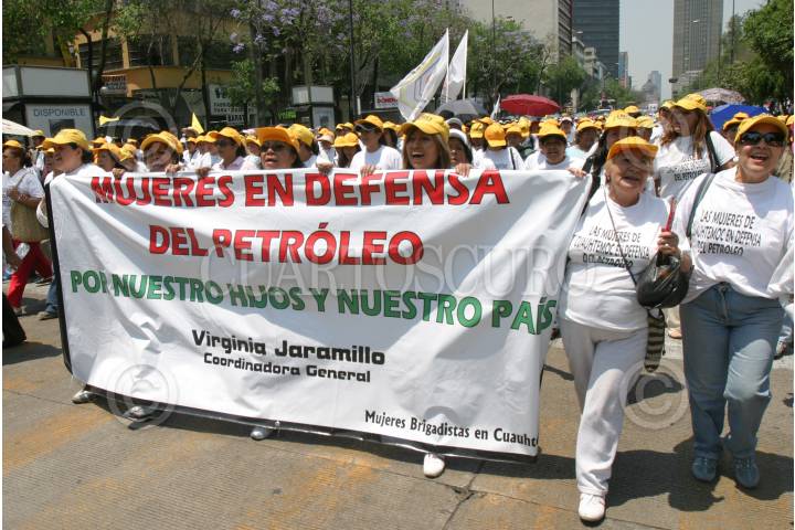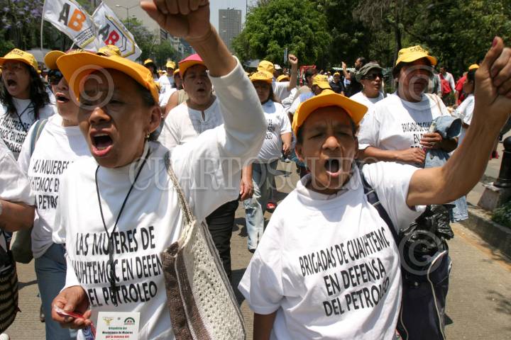 MÉXICO, D.F., 10ABRIL2008.- Las integrantes de las brigadas del movimiento por la defensa del petroleo se concentraron en el Hemiciclo a Juárez, para marchar hacia las inmediaciones del Senado de la República, para impedir se aprueba una reforma energética que según han señalado permitiría una privatización de la paraestatal Pemex. FOTO: MOISÉS PABLO/CUARTOSCURO.COM