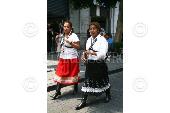 MÉXICO D.F., 22ABRIL2008.- Las denominadas "Adelitas en defensa del petróleo" bailaron y cantaron durante el acto de protesta que realizaron frente a la Torre del Caballito, donde se llevaba a cabo la sesión del Senado. FOTO: MOISÉS PABLO/CUARTOSCURO.COM