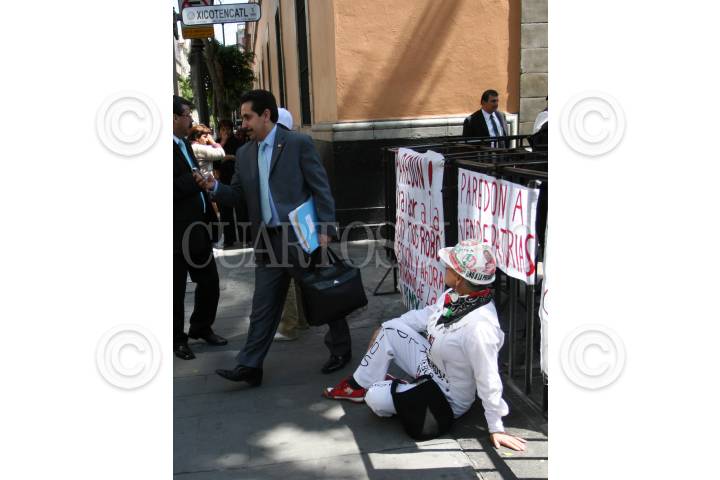 MÉXICO, D.F., 14OCTUBRE2008.- El senador Ruben Camarillo, sale de la sede del Senado de la República mientras es observado por manifestantes que se oponen a un posible reforma en la que se privatiza PEMEX. FOTO: MOISÉS PABLO/CUARTOSCURO.COM