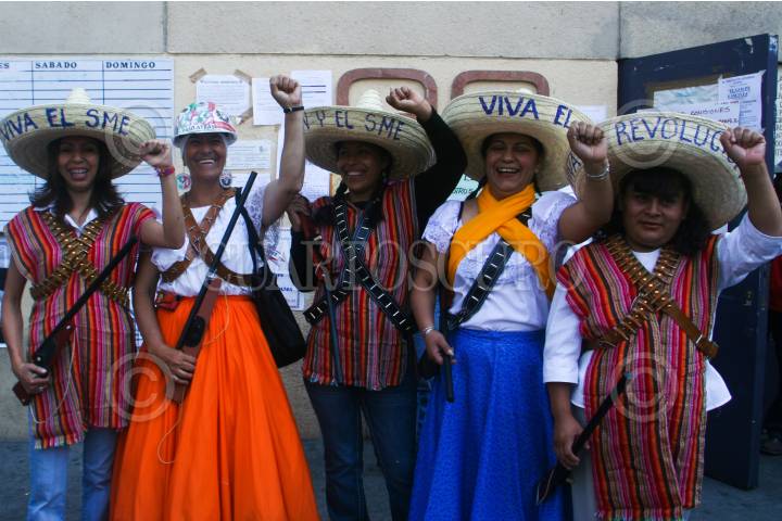 MÉXICO D.F., 20NOVIEMBRE2009.- Mujeres integrantes del Sindicato Mexicano de Electricistas, se vistieron de Adelitas en honor al 99 aniversario de la Revolución Mexicana. FOTO: ENRIQUE ORDÓÑEZ/CUARTOSCURO.COM