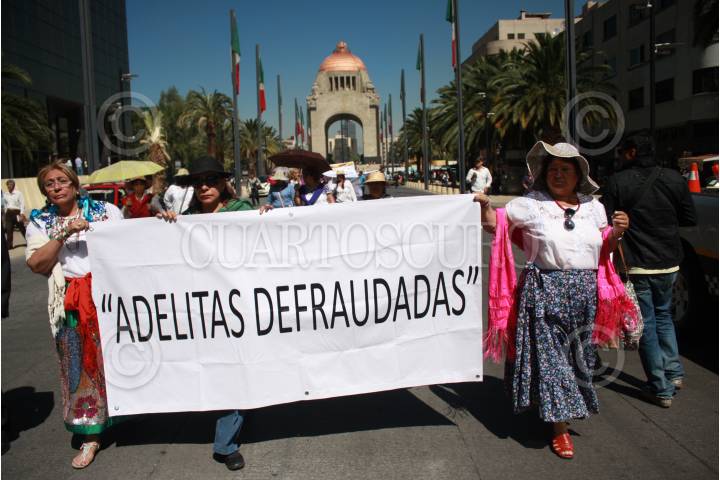 MÉXICO, D.F., 30MATO2012.- Mujeres llamadas "Adelitas" marcharon del Monumento a la Revolución al Zocalo, para exigir se les cumpla la entrega de viviendas por haber apoyado al ahora candidato a la presidencia Andrés Manuel López Obrador. FOTO: ADRIANA ALVAREZ /CUARTOSCURO.COM