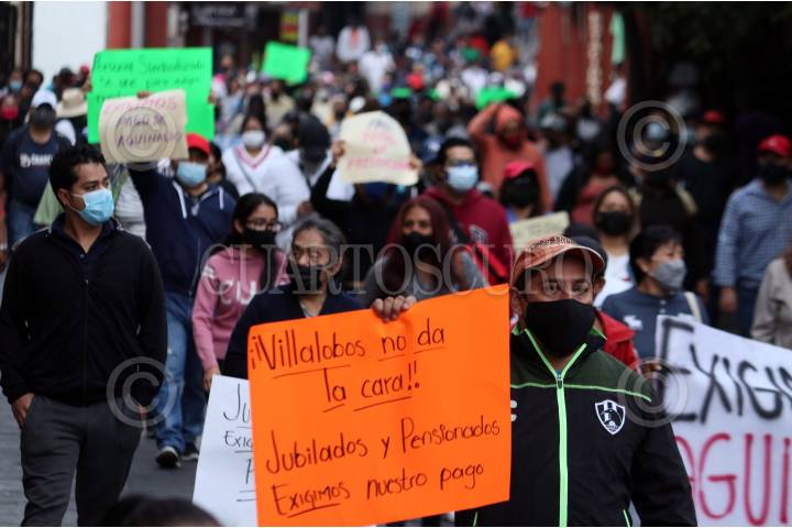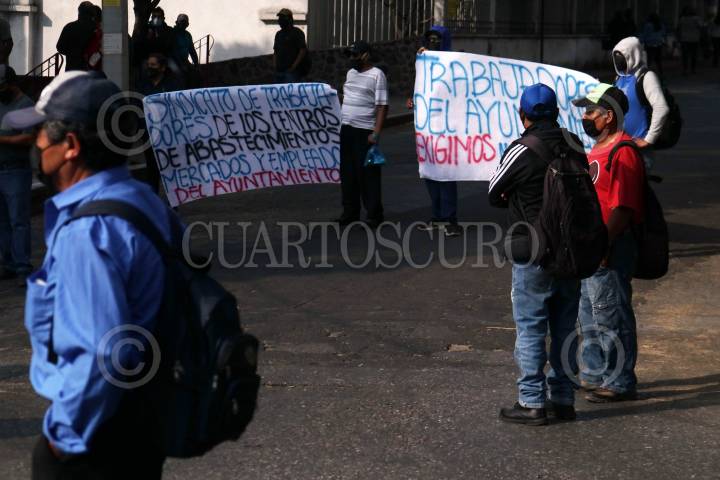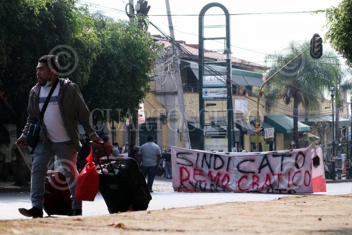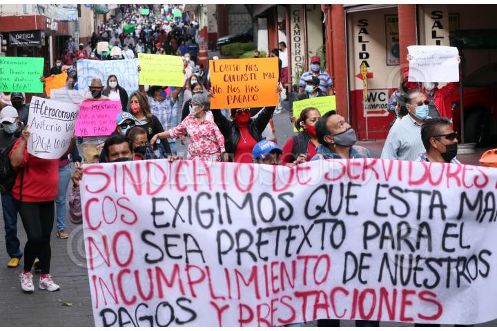 Marchan sindicatos del Ayuntamiento de la capital para exigir pago de aguinaldo, prima vacacional, bono por fin de trienio y quincenas atrasadas.