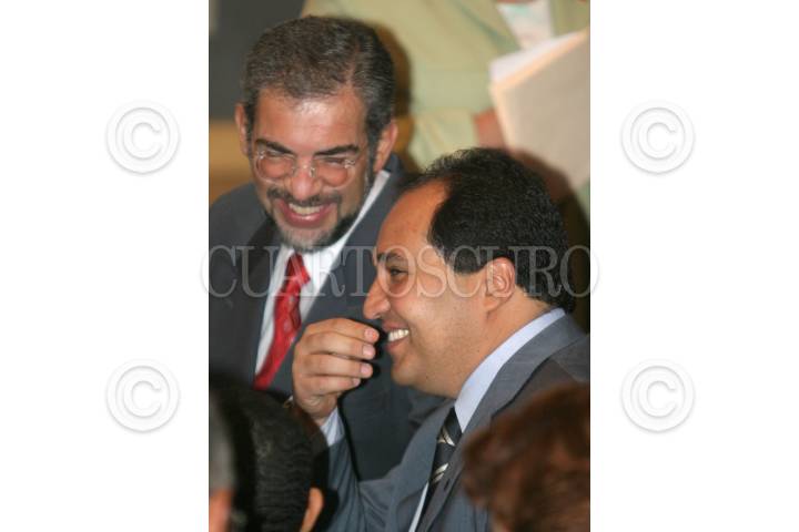 MEXICO, D.F. 06ENERO2005.- Benjamín González Roaro, director del ISSSTE y Santiago Levi, director del IMSS conversan previo a la ceremonia de La Prevención y el Tratamiento de Cáncer en la Infancia y la Adolescencia, que se llevó a cabo en el Hospital Infantil de México. FOTO: Nelly Salas/CUARTOSCURO.COM