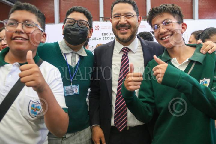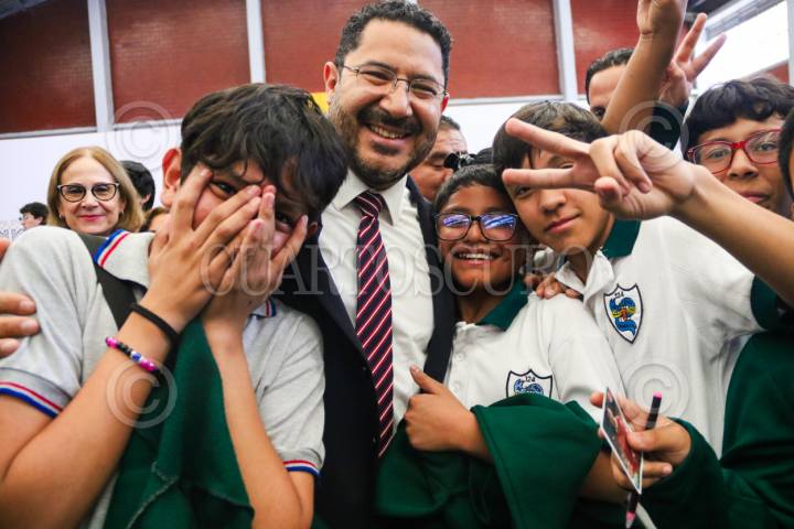 CIUDAD DE MÉXICO. 20MARZO2024.- Superviso el jefe del Gobierno la Ciudad, Martí Batres Guadarrama; el sistema de captación de agua de lluvia en la secundaria diurna 124, General de México que se localiza en la alcaldía Azcapotzalco. FOTO: VICTORIA VALTIERRA/CUARTOSCURO.COM