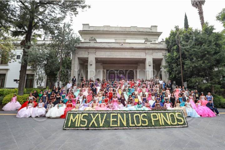 CIUDAD DE MÉXICO, 06JUNIO2024.- Por segundo año consecutivo, el Gobierno de México através de la Secretaría de Cultura organizó el evento “Mis Quince en Los Pinos”, en esta ocasión, para celebrar a 124 adolescentes que residen en Centros de Asistencia Social de todo el país. Las y los festejados se reunieron en la Casa Miguel Alemán para bajar las escalinatas y tuvieron la sesión de fotografía grupal. Luego, en el Helipuerto bailaron el vals, recibieron obsequios diversos y cenaron en esta fiesta organizada para ellas y ellos. FOTO: PRENSA CULTURA/CUARTOSCURO.COM
