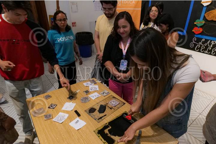 CIUDAD DE MÉXICO, 17JULIO2024.- Adolescentes y adultos participaron en un taller del Museo Nacional de Arte durante el cual pudieron reproducir varias iconografías del museo en su piel mediante la elaboración de tatuajes temporales, en el Laboratorio del MUNAL. FOTO: ALICE MORITZ/CUARTOSCURO.COM