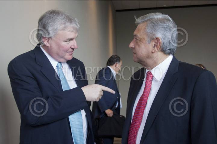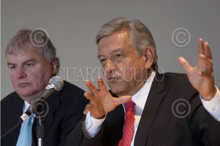MÉXICO, D.F. 18MARZO2012.- Andrés Manuel López Obrador, candidato de las izquierdas mexicanas a la presidencia de la República, presentó a Adolfo Hellmund como Secretario de Energía en caso de ganar la presidencia de la República. FOTO: IVAN STEPHENS /CUARTOSCURO.COM