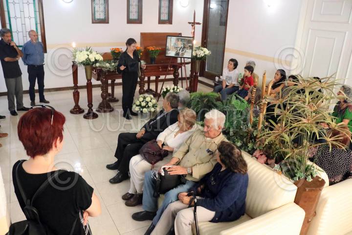 CUERNAVACA, MORELOS, 13OCTUBRE2019.- Sepelio del grabador Adolfo Mexiac. El artista nacido en Michoacán hace 92 años murió en esta ciudad. Su esposa, familiares, amigos y algunos admiradores han acudido a la funeraria donde se vela para dar el pésame y acompañar. FOTO: MARGARITO PÉREZ RETANA /CUARTOSCURO.COM