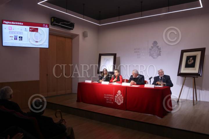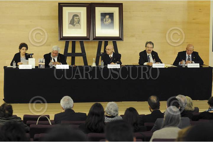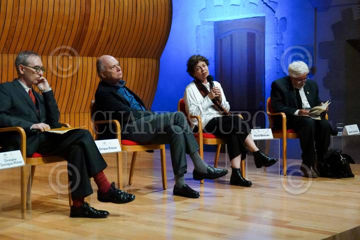 Christopher Domínguez Michael, Enrique Krauze, María Baranda, Adolfo Castañón durante el el homenaje “El Futuro de Octavio Paz a 25 años de su muerte" en el Colegio Nacional.