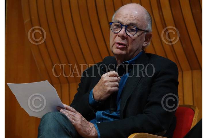 CIUDAD DE MÉXICO, 26AGOSTO2025.- El escritor Adolfo Castañón, tesorero de la Academia Mexicana de la Lengua, durante la conferencia de prensa en la que se dieron ofrecieron detalles de los eventos para conmemorar la Academia Mexicana de la Lengua, que fue fundada en el año de 1875. Los festejos se realizarán de 2 al 11 de septiembre en su sede, que está ubicada en Donceles 66, inmueble que tiene poco que fue recuperado y remozado. Su director señalo que a pesar de los drásticos recortes que sufrió por parte del gobierno federal la academia subsistió con gestiones internas, como la venta de un terrero y varios cuadros de pintores reconocidos, además de los esfuerzos de sus integrantes quienes renunciaron al pago de viáticos. FOTO: MOISÉS PABLO/CUARTOSCURO.COM