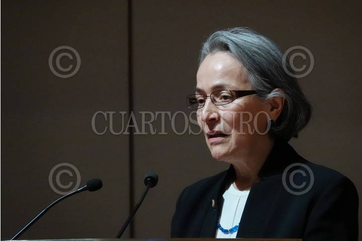 María Baranda durante el el homenaje “El Futuro de Octavio Paz a 25 años de su muerte" en el Colegio Nacional.