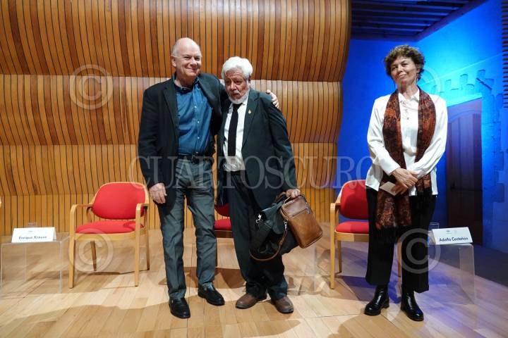 CIUDAD DE MÉXICO, 02SEPTIEMBRE2025.- Concepción Company Company, académica española; Gonzalo Celorio, director de la Academia Mexicana de la Lengua, y Adolfo Castañón, secretario, participaron en un evento del 150 Aniversario de la Academia Mexicana de la Lengua realizada en las inmediaciones de este recinto. FOTO: GRACIELA LÓPEZ/CUARTOSCURO.COM