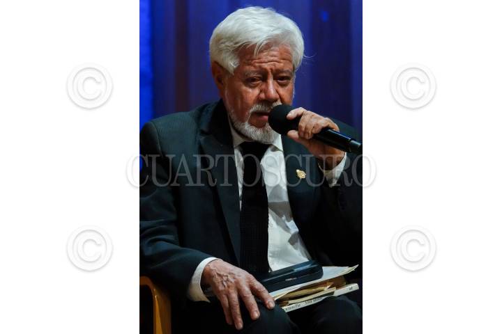 El ensayista y poeta Adolfo Castañón, durante la presentación del "Diccionario de mexicanismos. Piropos y compartidos" de la Academia Mexicana de la Lengua en la Sala Manuel M. Ponce del Palacio de Bellas Artes.